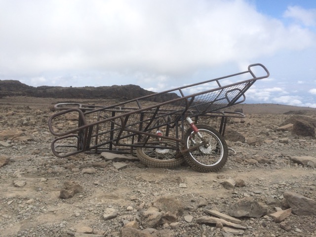 The porters were also responsible for doing med-evacs for injured climbers or climbers who couldn’t continue due to exhaustion. They called these steel cages “stretchers.” It would really suck to be wheeled off the mountain on one of these, especially with an injury. These are the modern versions that have a motorcycle wheel and shocks. The old version was a modified wheelbarrow.