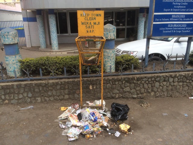 A little about Kilimanjaro. It’s the highest mountain on 4 continents (Africa, Europe, Australia/Oceania, and Antarctica). It’s the highest free standing mountain in the world, meaning it’s not part of a range. When you summit Kili, you start at the bottom. There are plenty of 14K footers in Colorado that you can do in a day if you park near the top. That’s not the case in Africa. It’s a a more “rustic” climb. It’s kind of like climbing the highest mountain in Colorado if you started at sea level in New Orleans. Check out this garbage bin in the nearby town of Arusha: