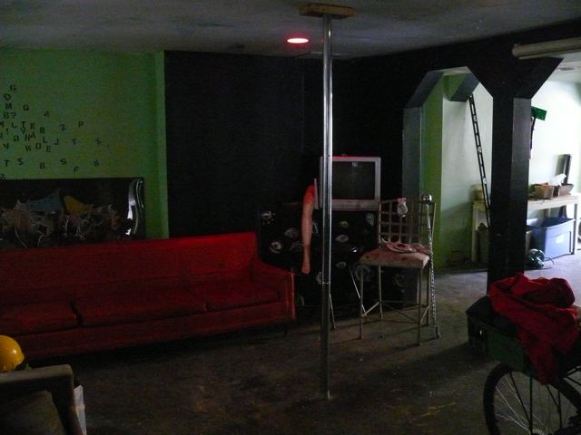If you are wondering how this whole thing is possible you are not alone – I wondered the same thing. Kayla tells me that rent is cheap, utilities are included, and the owner of the building(an artist himself, who lives in California) lets the artists self-govern and pick there own prospective housemates. So basically, a rotating roster of tenants(most from Craigslist ads) become roommates in the art house. Some stay for a month, some for years. While in the house, they all seem to focus alot of energy and time onto one thing – huge parties.