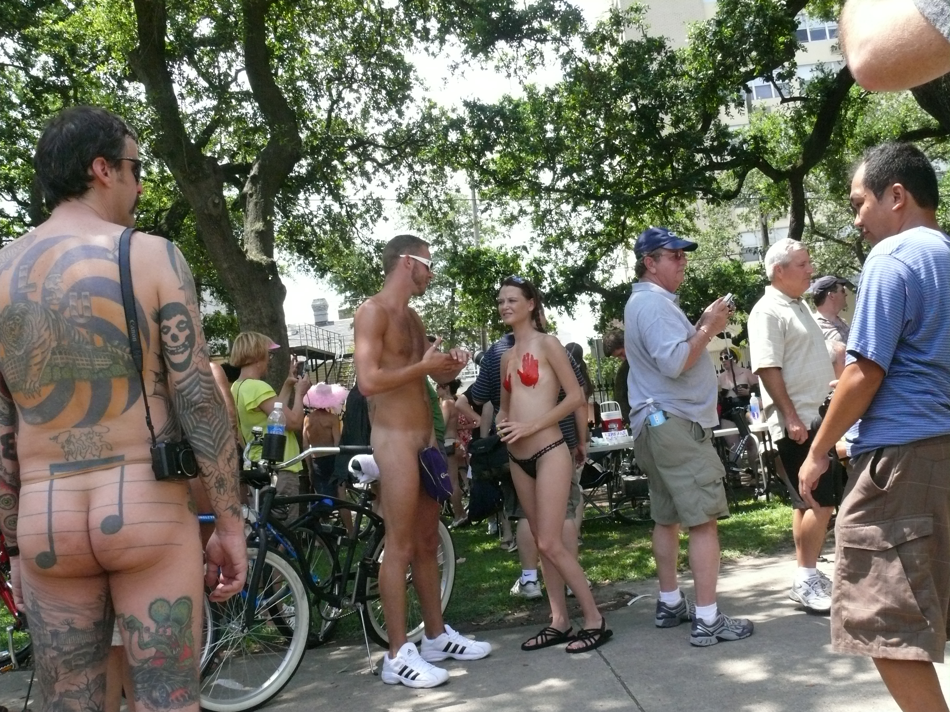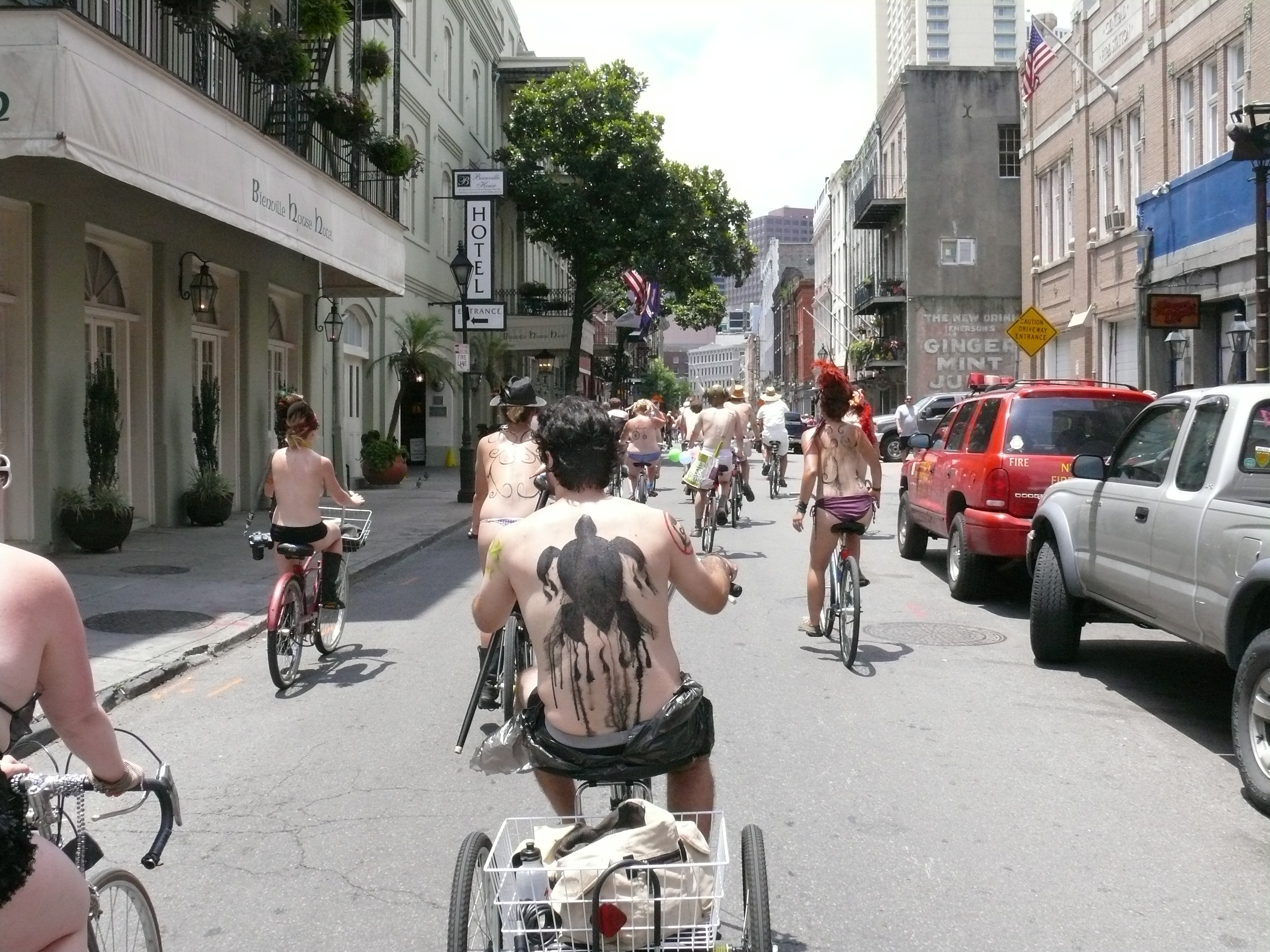 Well, it came time again to toss off your clothes and hit the streets in the classic art of nude bicycle riding. Yes, if you weren’t there on Saturday, you missed the second annual World Naked Bike Ride in New Orleans.