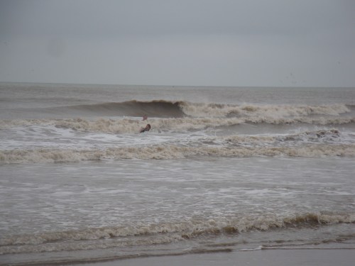 The next morning I woke up at 7am, threw on my bathing suit, rash guard, and my board. Jamie came along with her guitar and we jumped in the car and headed to Flagship pier – one of the decent places to surf in Galveston. It was overcast and the water was choppy with a strong current. I met up with Josh and we dove into the water. It was freezing, but I went under and pushed through. Surfing in Galveston is completely different than Hawaii or Cali; you really don’t need to paddle out cause the breaks are closer to the shore, so you just wade out and when you see a wave you wanna ride you jump on your board and push out – not much paddling needed. Be careful when you wipeout though, because its really shallow and you hit the bottom hard.