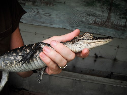 We only saw a couple of small wild gators on the boat ride, but they had some serious monsters in a small pond on their property.