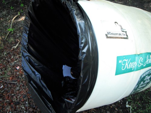 Stopped at a roadside park on Old 51 north and threw up a NOadventure sticker on this garbage can.