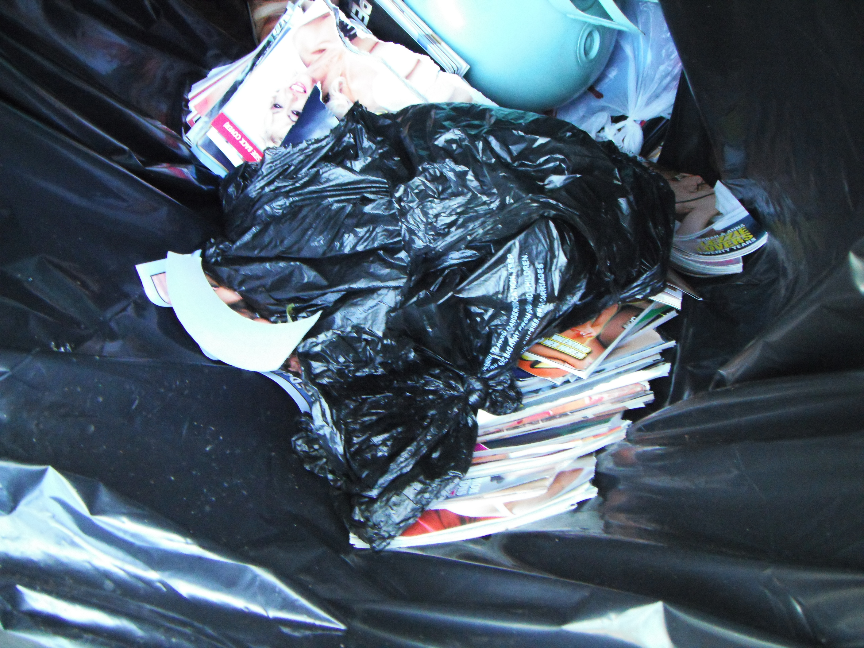 Not surprisingly, the garbage can contained a huge stash of porn.