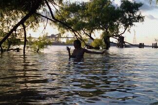 I haven’t been swimming in the river yet this summer, but the lake is always a good safe option. Follow Bayou St. John to Lake Shore Drive and I believe the place to jump in is slightly to the left. There are steps that descend into the lake and there are remnants of wooden poles sticking out of the water that mark a swimming course of 800 meters(1 half mile) there and back.