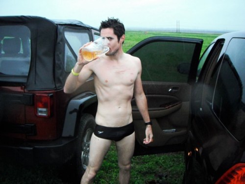 Before starting the race, I stuffed my ID in my shoe and a waterproof digital camera in my Speedo. During the race, I was tempted to pull out the camera and snap some shots, but I resisted because I wanted to remain competitive(and it was a huge pain in the sack to pull the camera out). I did pull it out during the race for one special occasion though – I spotted cheap beer legend KEITH STONE. He was slowly and cooly ambling through the mud and obstacles at a walking pace with a case of Keystone Light in tow.