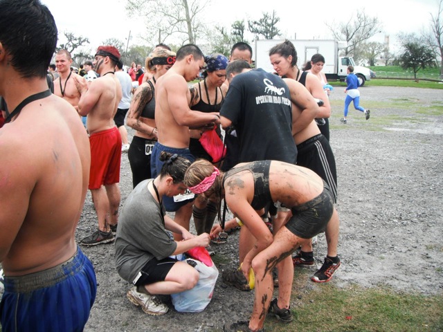 After the race, before hitting up the beer tent, everyone had their own strategy for cleaning up. Some of us waded out into a pond that no person would normally swim in, but under the mud-covered circumstances, it seemed a logical choice.