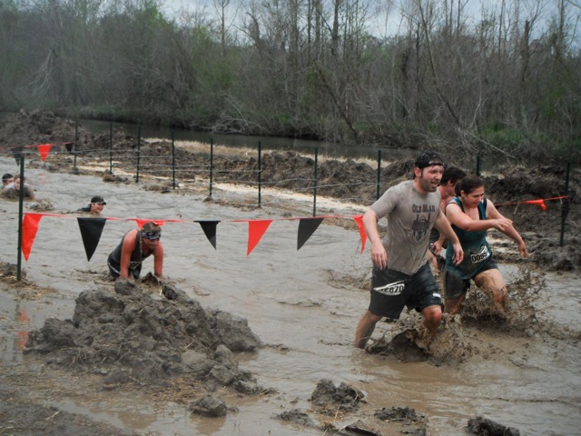 Thousands of footprints had whipped the mud into cake frosting. It was so slippery in parts that people just started skating around on the slop and hitting the deck face first. Here’s a photo of me I stole from Warrior Dash’s official photography website. Notice how my right foot is completely submerged in mud.