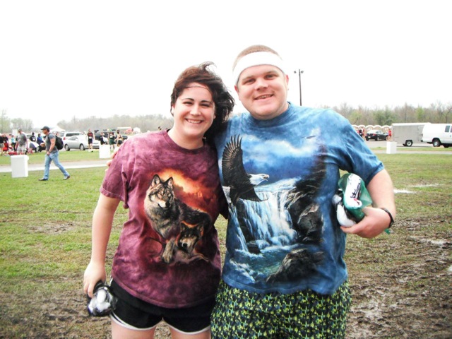 After a hasty cleanup, we moved on to the music stage and beer serving area. We ran into this nice couple on the way who expressed their spirit animals through the medium of t-shirts.