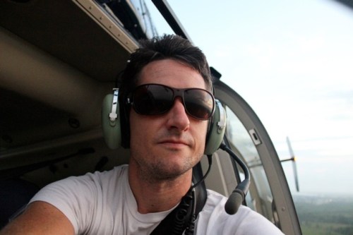 The pilot let us fly with the doors open so we could shoot. He showed us how to use the headsets, but then we were on our own, so I tied up everything that could fall out of the doors. I even roped myself in by reinforcing my seatbelt(because most of the time I was standing on the skid hanging out the door).