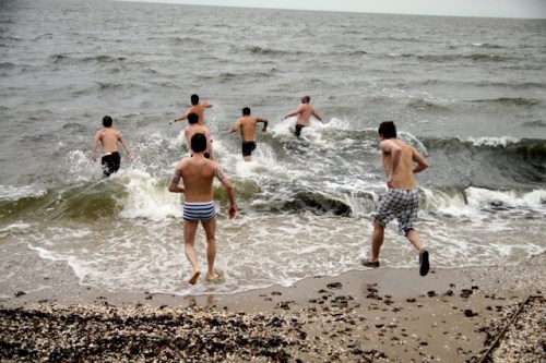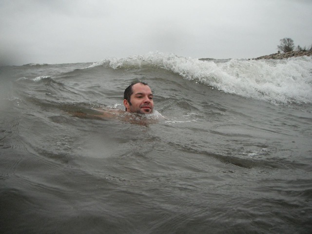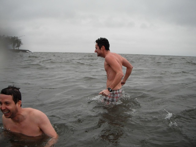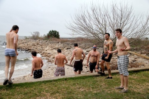 Despite huge online interest totaling to thousands of hits, participation in the inaugural meeting of the New Orleans Polar Bears was limited to a tight pack of brave men. It’s difficult to rally a team into figuratively uncharted waters(the waters were literally charted). For some reason, a lot of people travel or have other plans on Xmas day that don’t involve freezing your ass off in America’s largest seawater lake.