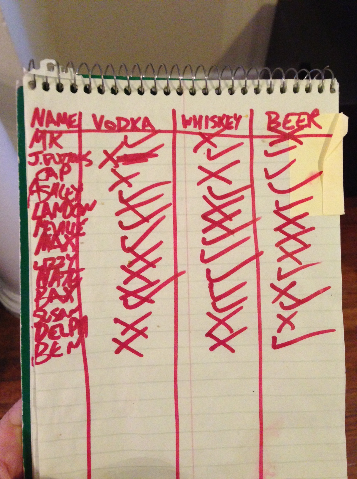 vodka: WRONG. whiskey: CORRECT! beer: CORRECT!