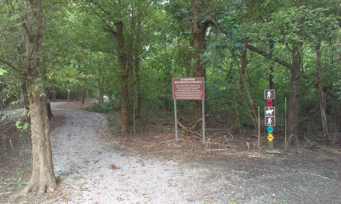 Once on F. Edward Herbert Blvd, you will pass an abandoned complex on your left (I explored one building of this government complex after my bike adventure, but it was getting dark and creepy). Then you will cross a small bridge (Planter’s Canal) and make an immediate left before the animal shelter to Woodland Trails (if you hit baseball fields, you missed it). Trailhead is at the end of the road. Very easy to follow and incredibly well marked, choose the equestrian or the hiking trail. It’s very overgrown in places but doable, since the bike elevates you a bit.