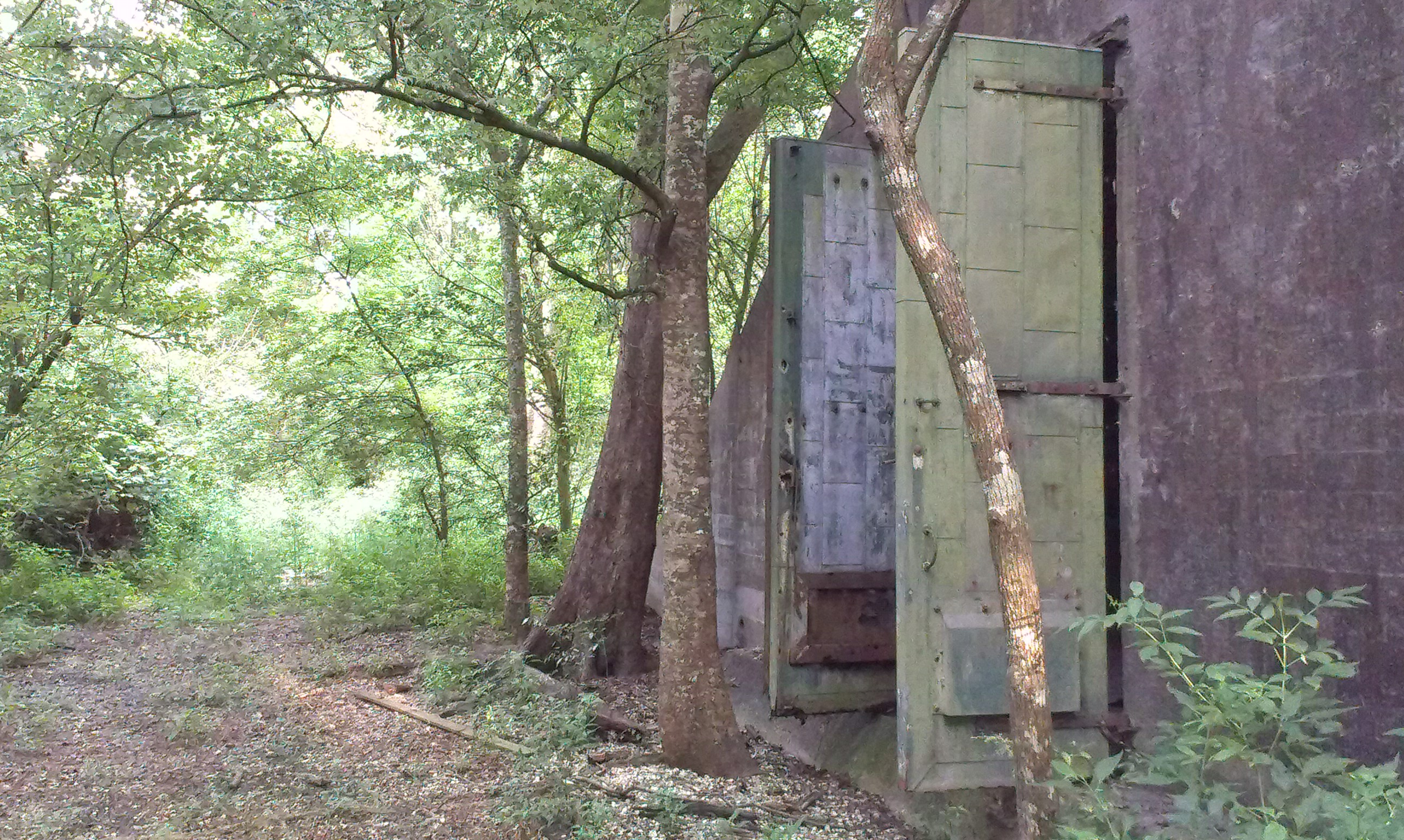 Best advice: Keep your head up! Most of the banana spiders were hanging just out of reach, but look for branches that stretch partway across the trail toward another – these seem to be their favorite. They are HUGE, yellow, and purple, you will see them. I biked holding a giant stick in front of me, but that felt a little extreme. When the trail seems too overgrown to continue and you see the frame of what used to be a trail sign, keep your eyes peeled for the concrete bunkers with large green doors on the very overgrown Naval Ammunition Depot Loop.