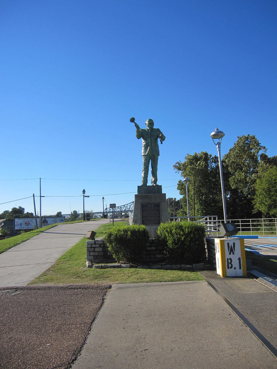 When you get off the ferry, head to your right where you’ll be greeted by a marvelous statue of the most famous ambassador of New Orleans, Louis Armstrong.