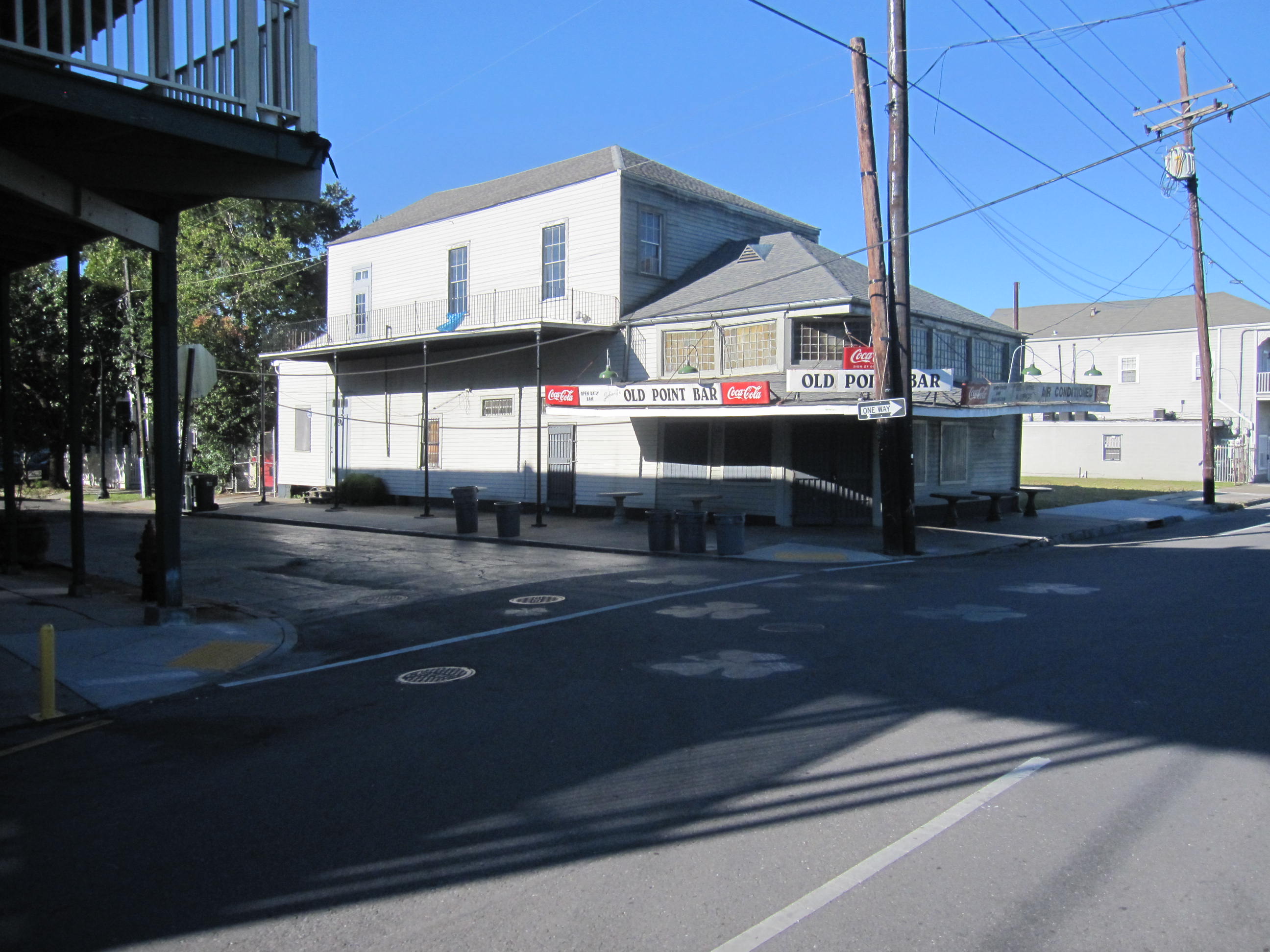 It is closed in this picture, but they put out tables on the sidewalk and there are always colorful locals as well as tourists here; it’s truly a drinker’s landmark in Old Algiers. When you come off the levee, you simply keep going past the Ferry station and ride out against the one way on Patterson road(hardly any traffic). The Olde Point is famous for being used in lots of movies. In fact several locations in Old Algiers are readily used in feature films as well as HBO’s Treme series.